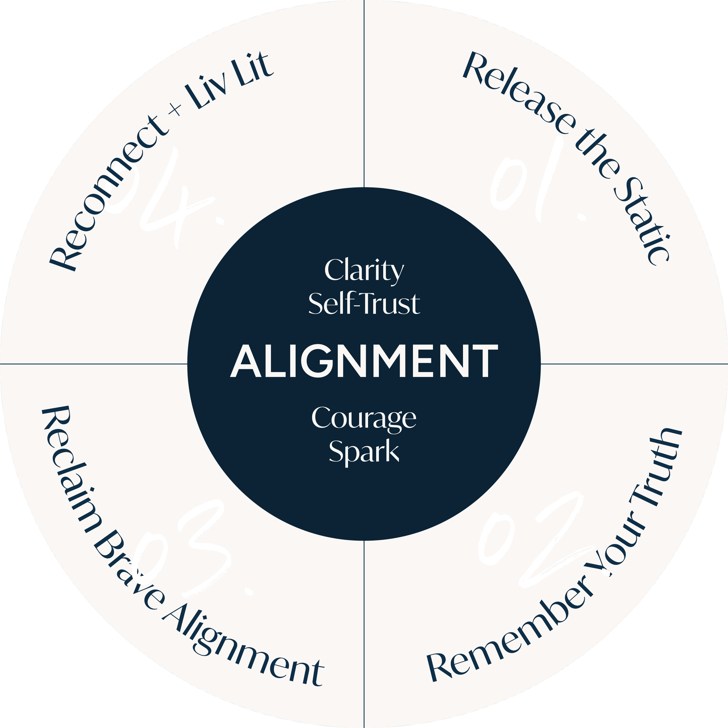 When you’re out of alignment, there’s static: pressure, comparison, overthinking, people-pleasing—and that constant sense you should be doing more or being different.